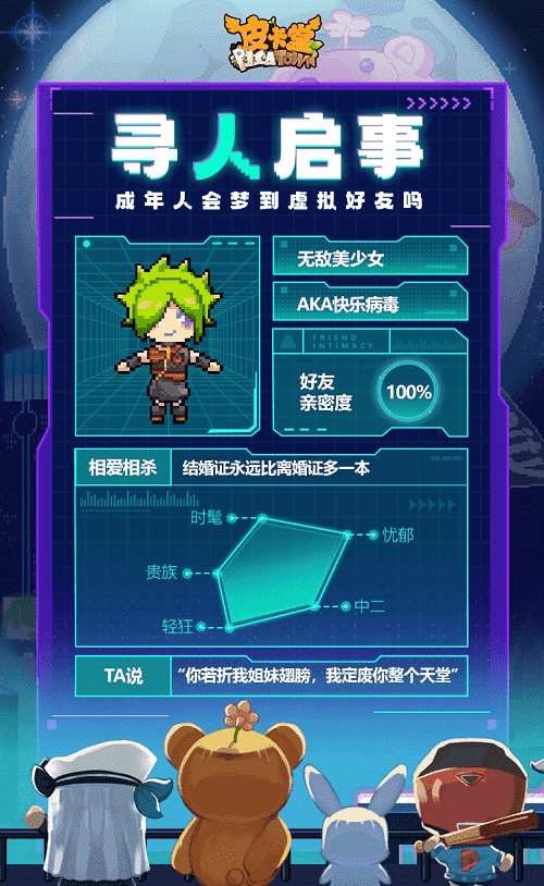 除此之外,,,,更丰富的全新玩法也会在这里与大家见面,,,希望给大家带来不一样的游玩体验。。。。升级后的皮卡小镇,,大家可以和闺蜜一起逛购物街,,,,邀请三两好友来到自己开的小店,,还可以在小屋体验海岛或城堡生活……总之,,,希望大家能在游戏中找回最快乐的自己,,,,享受最纯粹的社交魅力。。
