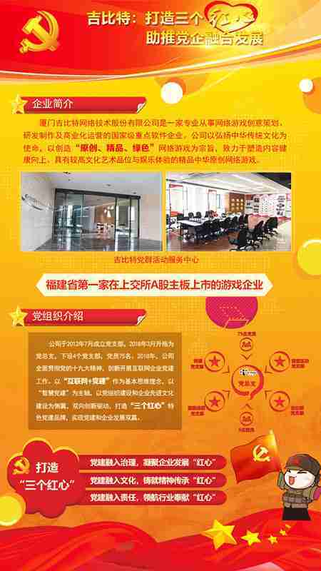 未来公司将全面学习贯彻习近平新时代中国特色社会主义思想和党的十九大精神,,,持续强化“互联网+党建”的思维理念,,,,以“智慧党建”为主轴,,,以党组织建设和企业先进文化建设为侧翼,,双向创新驱动,,,引领有信仰、、、、有情怀、、、、有价值的新时代游戏研发运营,,在不断发展壮大的同时,,,,成为行业的“红色标杆”,,,,实现党建和企业发展双赢。。。。